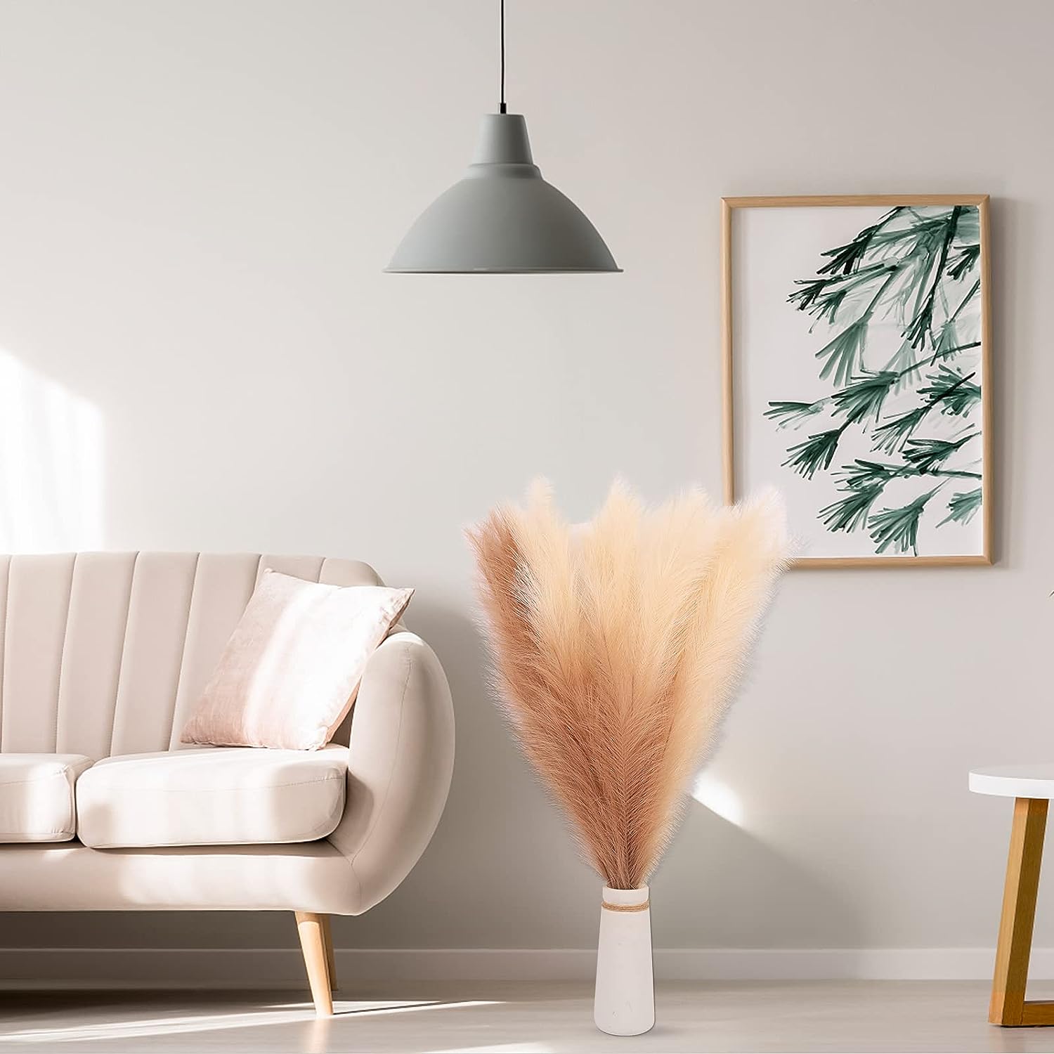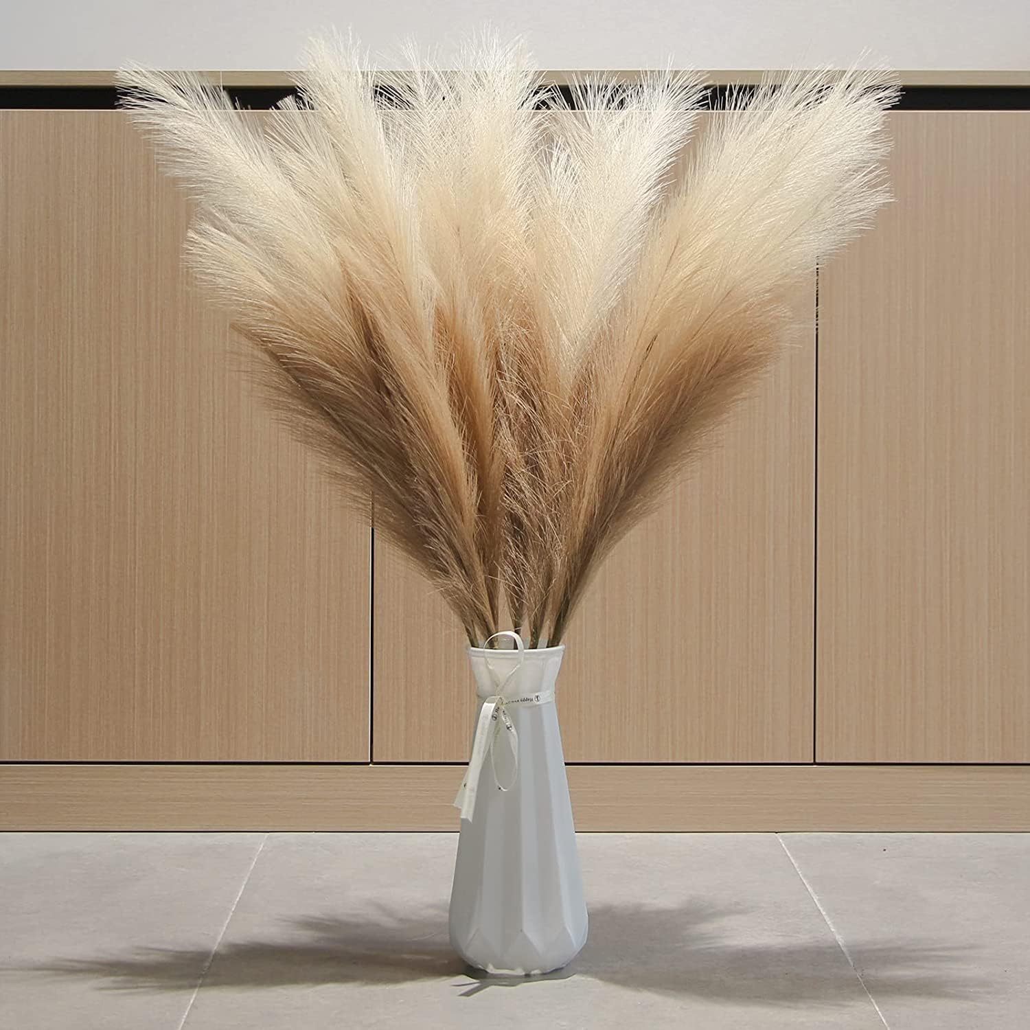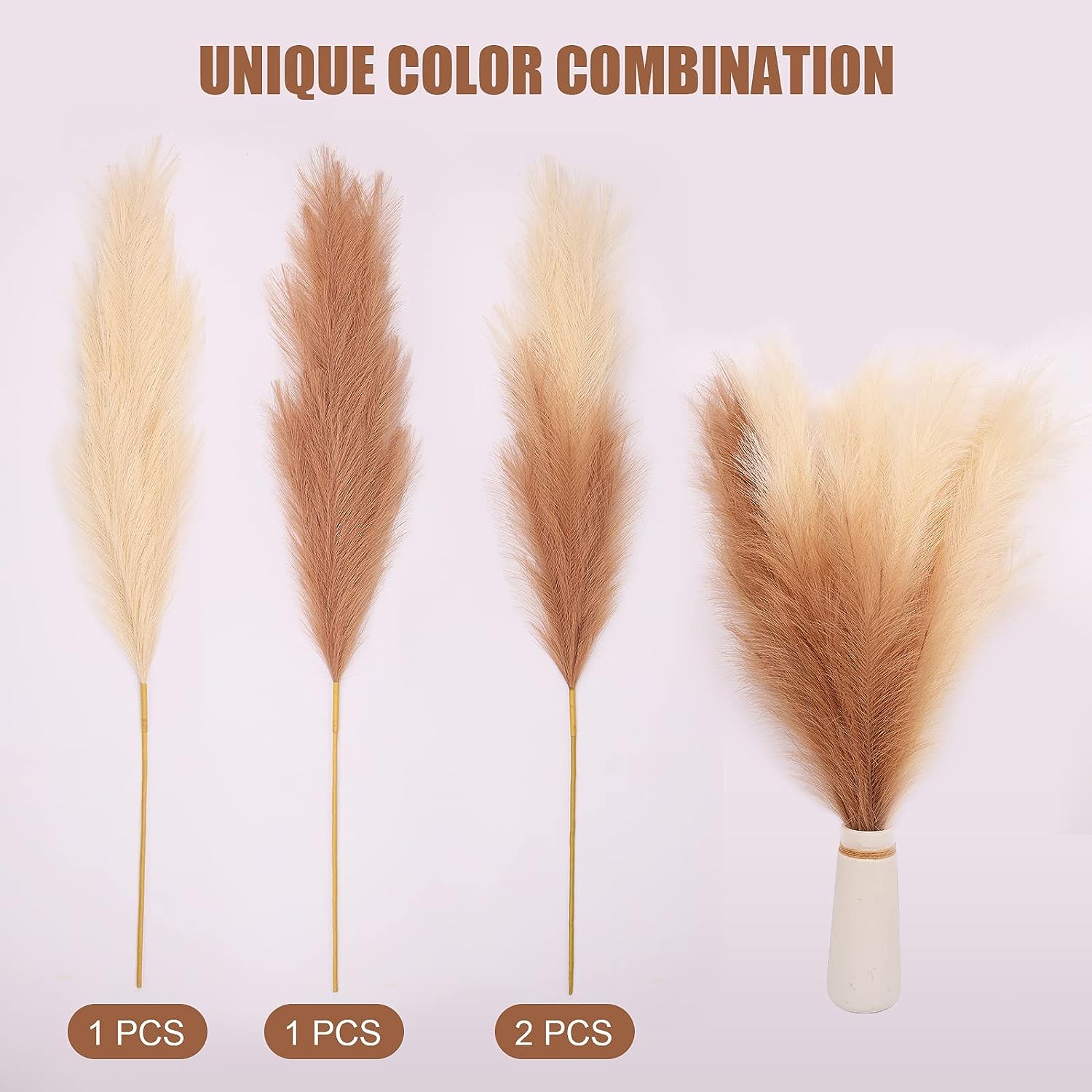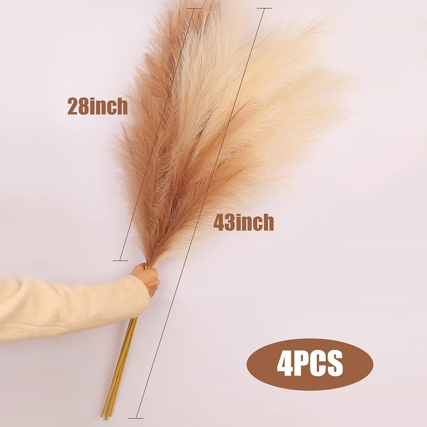 4PCS Faux Pampas Grass 43"/110cm Tall Artificial Pompas Floral Large Fake Pompous Grass, Rustic Trendy Minimalist Boho Farmhouse Room Decor (Beige Mix Brown)