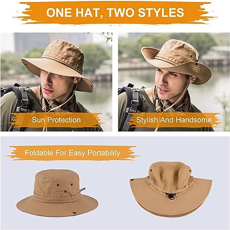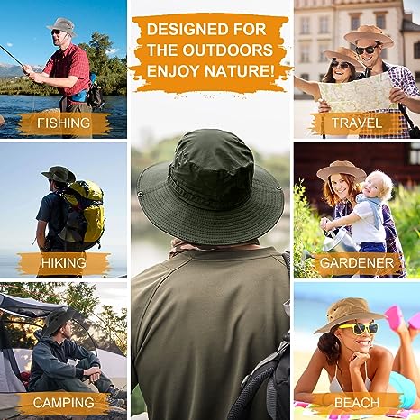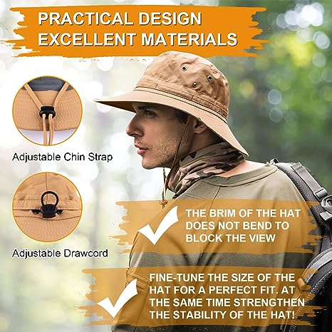 Fishing hat Wide Brim Sun Protection Hat with Breathable Safari hat and Fisherman hat Hiking Hats Boonie Hats for Man