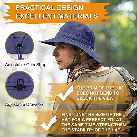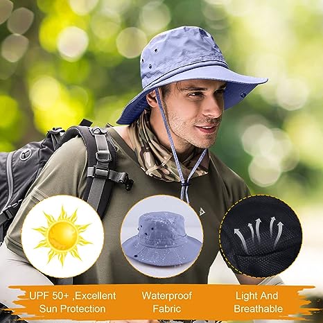 Fishing hat Wide Brim Sun Protection Hat with Breathable Safari hat and Fisherman hat Hiking Hats Boonie Hats for Man