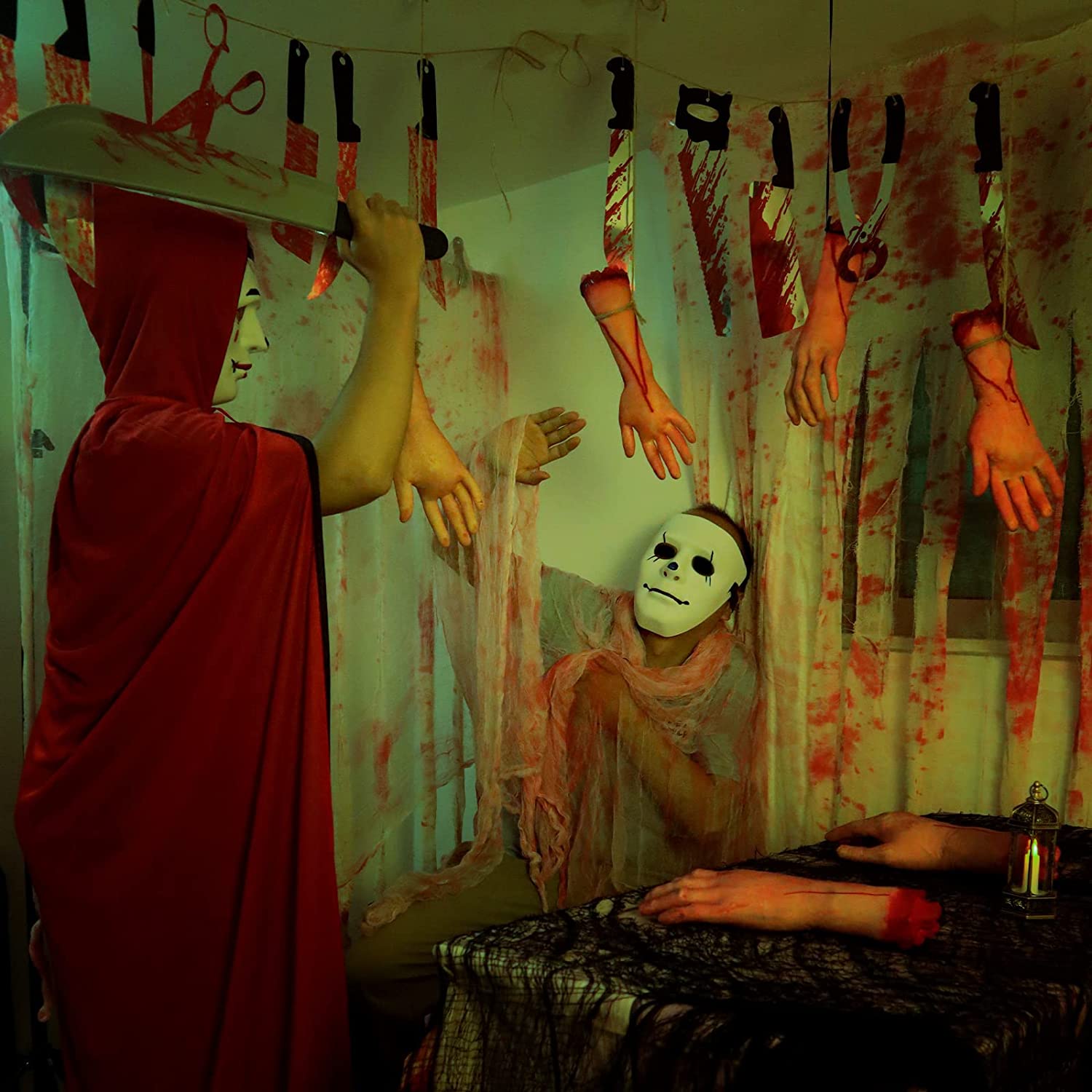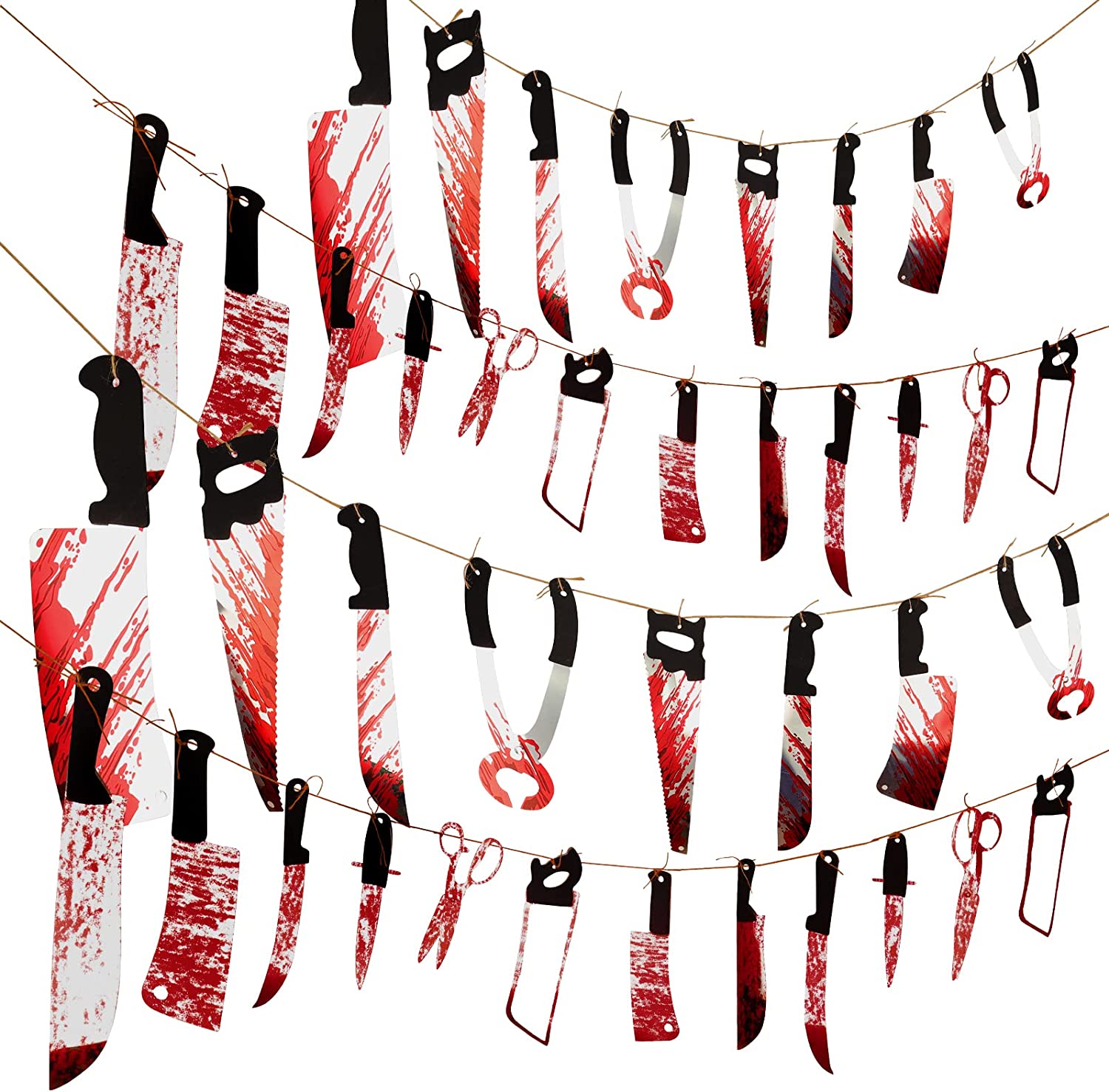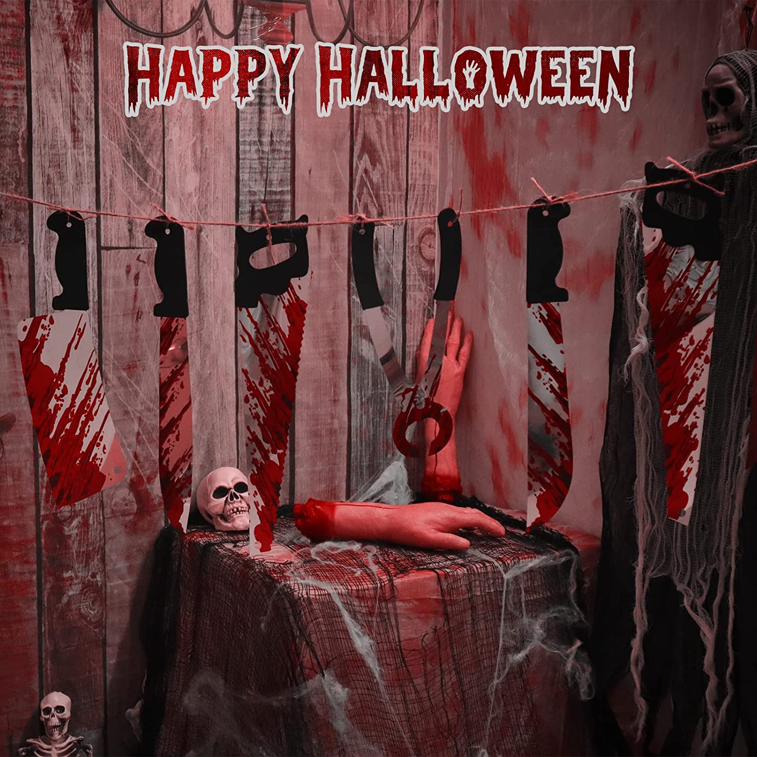 Halloween Decorations Fake Blood Weapons, Halloween Decor Bloody Garland Banner for Haunted House Halloween Horror Party Decor