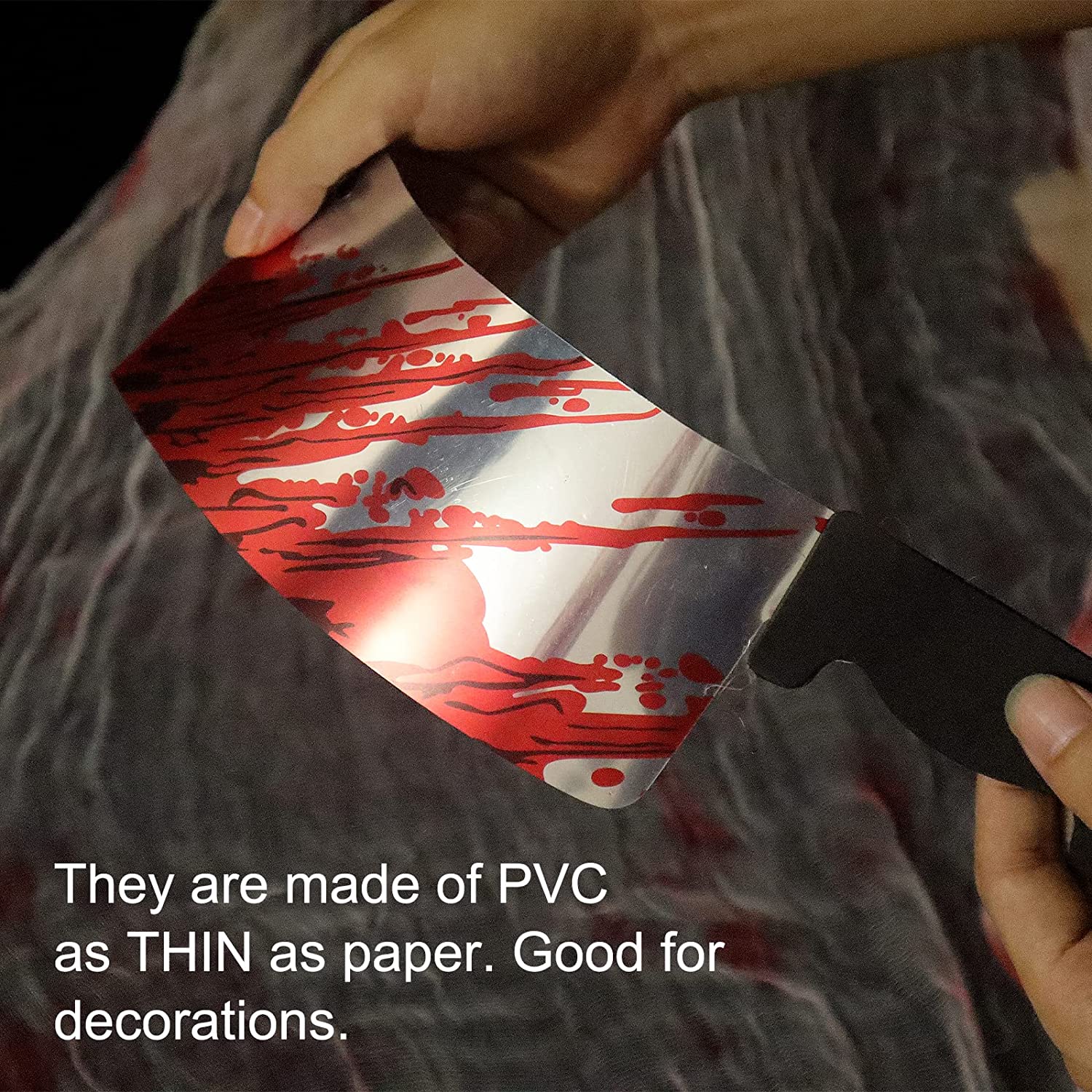 Package Included:Halloween Decorations comes with 4 sets of banners,totally with 40 weapons (Two banners with 12 weapons each (matt) and two banners with 8 weapons (glossy) as picture shows).The string is approximately 90inch.These banners come pre-assembled. Halloween Weapons Knife: Scary halloween decorations features a variety of blood splattered horror prop such as a butcher knife,Chainsaw. Realistic design of this fake blood knife is enough to definitely add weird factors to make the Halloween party successful. Realistic Looking & Waterproof :Creepy halloween decorations made of a Thin & Bendable laminated sheet of plastic that is made to look shiny like metal.The string is butcher twine adding to the creepiness of it.They are waterproof,Perfect for halloween outdoor decorations. Occasion:Halloween bloody decorations are creepy enough to push a simple “Horror theme” decor over the top, You can create scary scenes in the bathroom, kitchen, windows. Essential accessories for all kinds of parties like masquerades, performances, Horror themed bar,Haunted house. it’s also a movie props. DIY: The halloween decorations scary is easy to use and can be used alone, Within the required length, you can cut banner yourself and decorate it anywhere in the house. It can be easily shortened if needed.