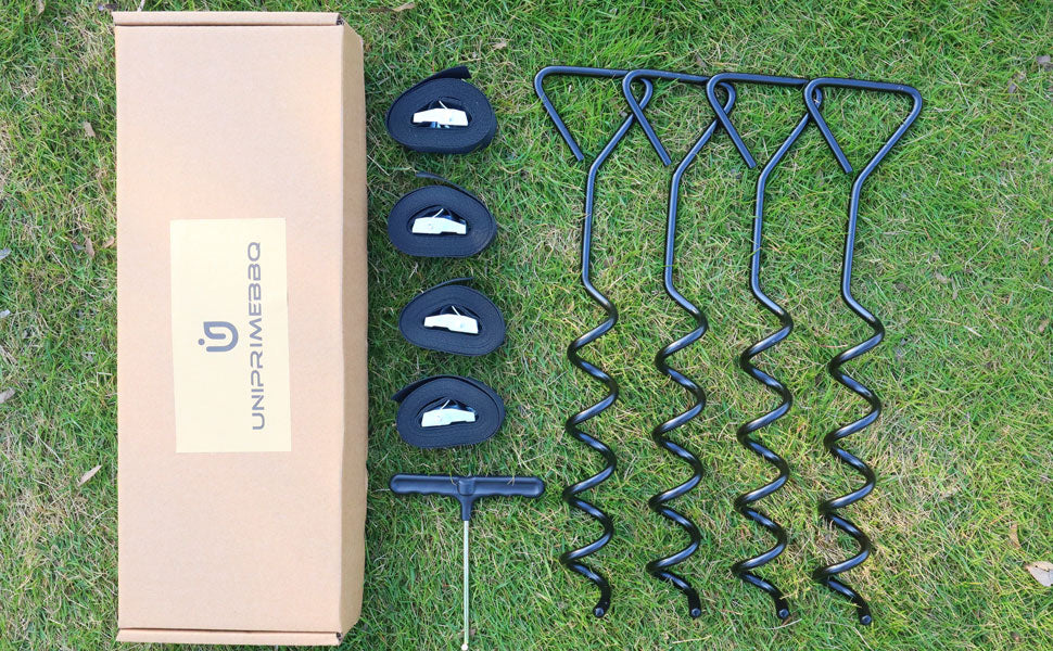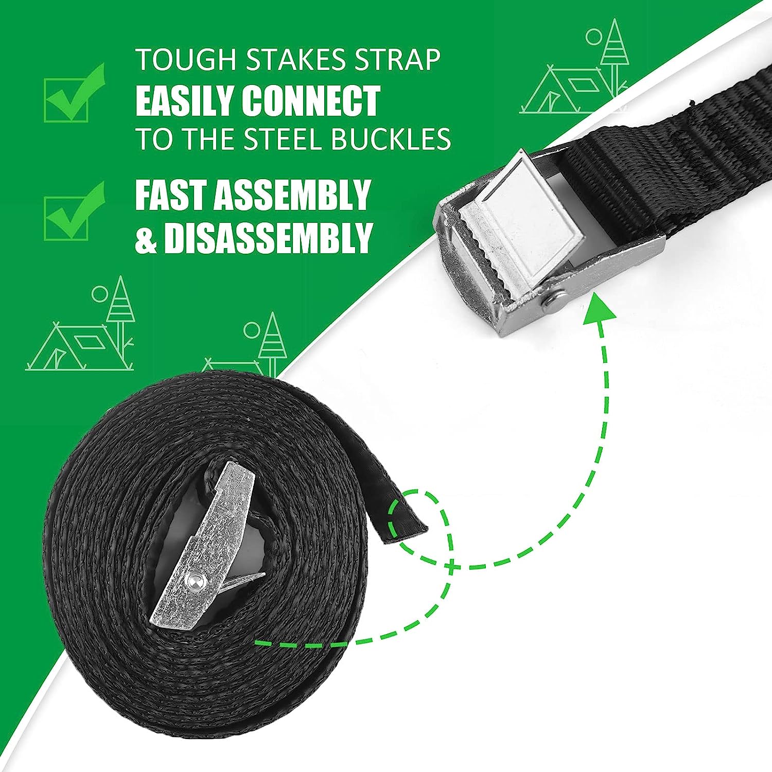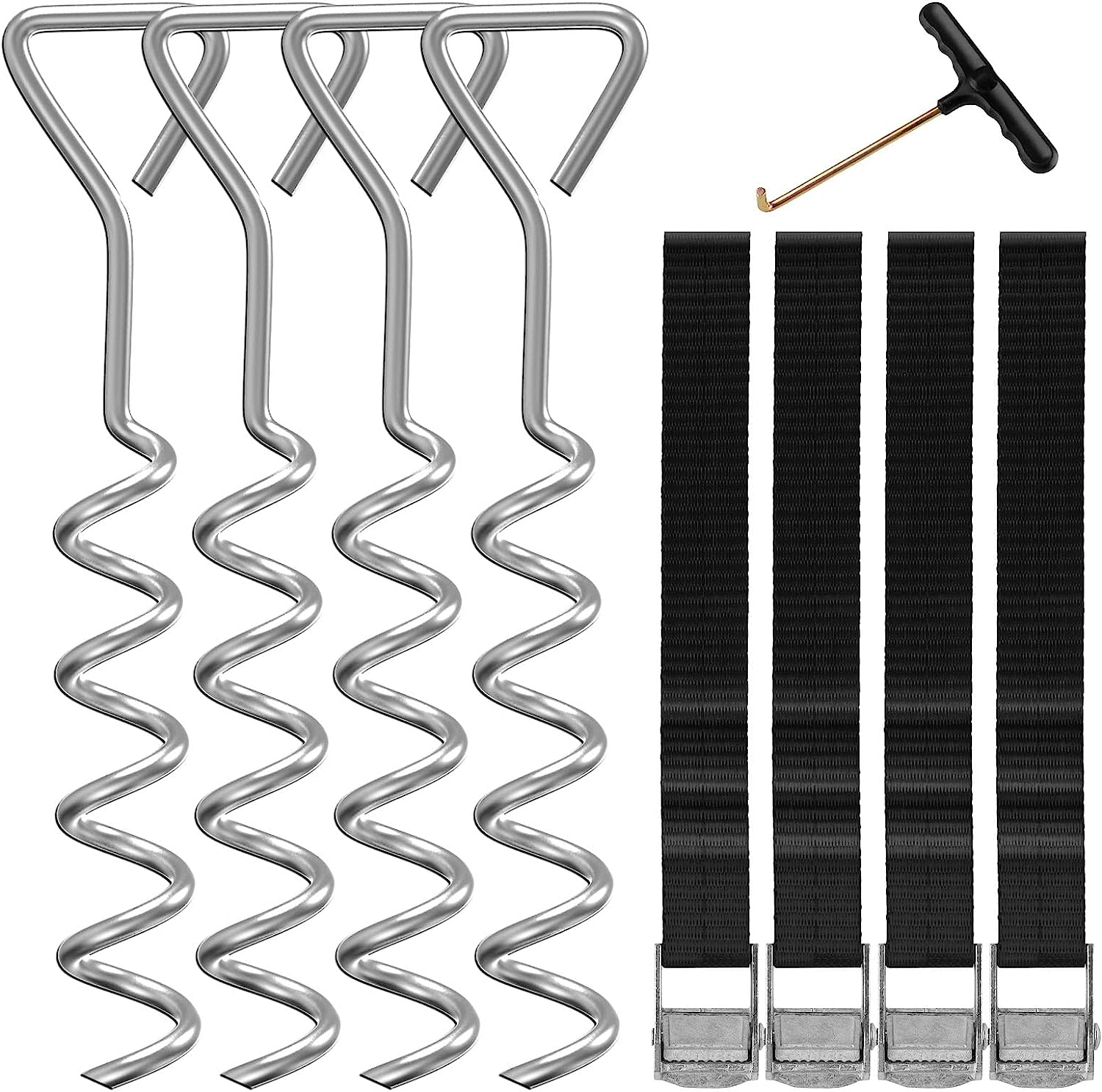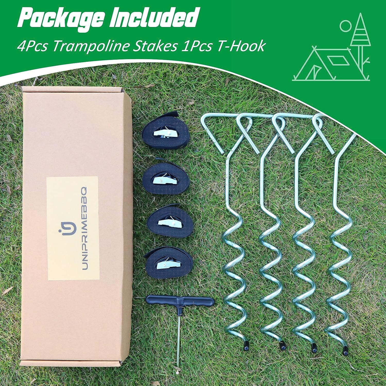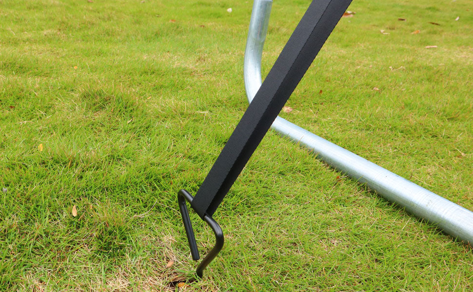 - Package Included:4 trampoline anchor kit , 4 Belt Straps and 1 T-hook.Tough Strong Belt straps easily connect to the steel buckles for fast assembly and disassembly.