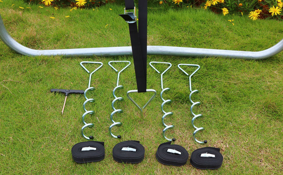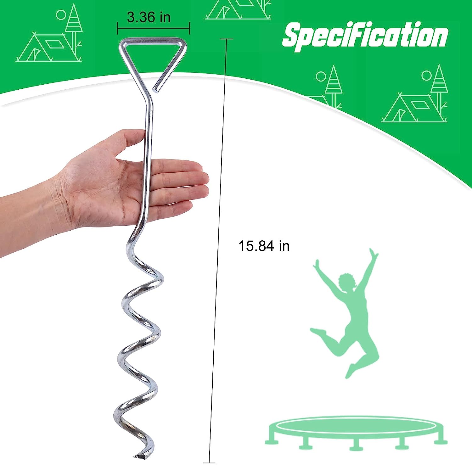 - 15.84inch Length:The trampoline tie down anchor kit length is 15.84inch, it twist deep into the ground for the highest level of trampoline stability.Keep your trampoline in place.