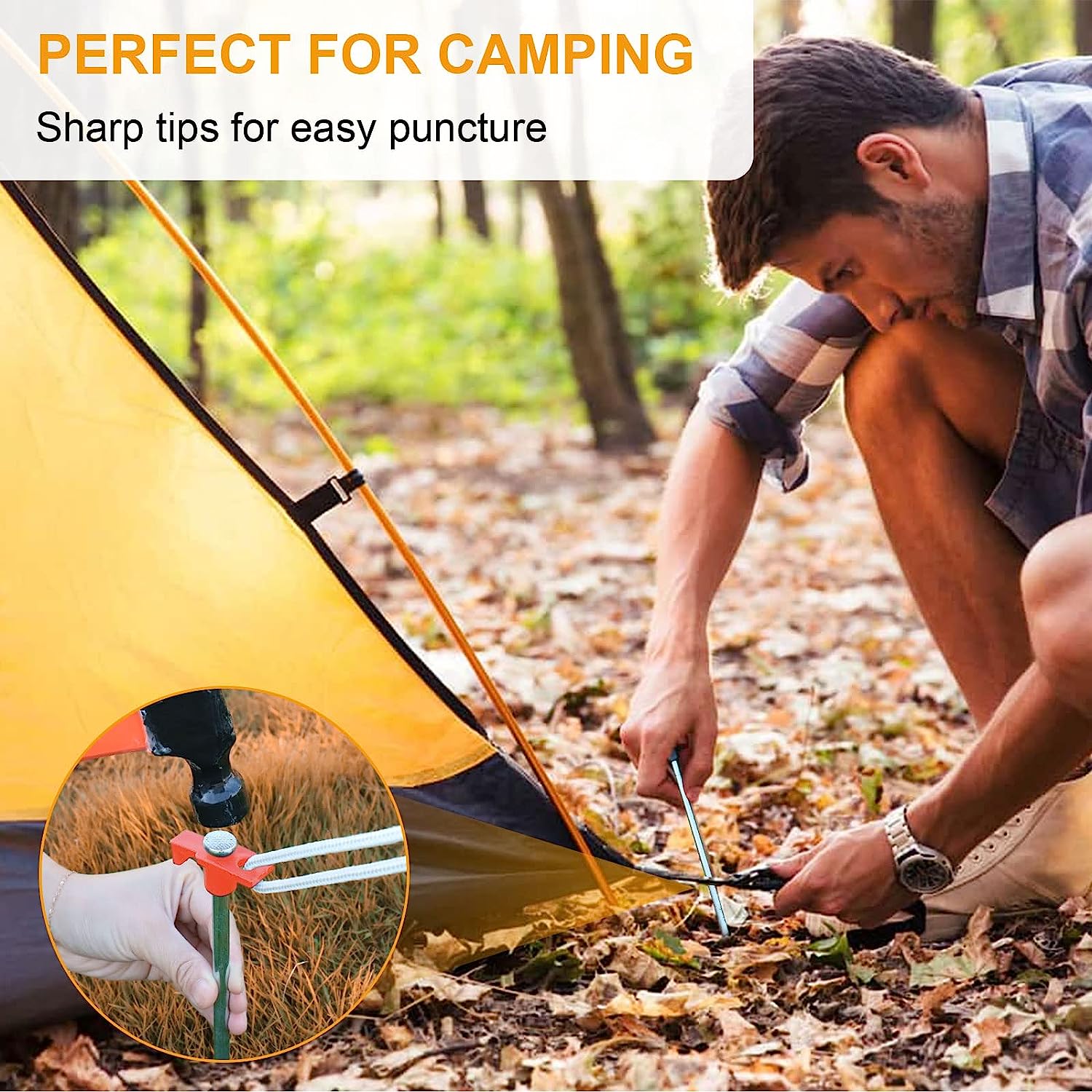 - 【Greatest Holding Ability】Tent stakes are used to help maintain the tent's shape, and to hold the tent in place against wind.Anchor a tent with these camping stakes and give you a stable shelter.