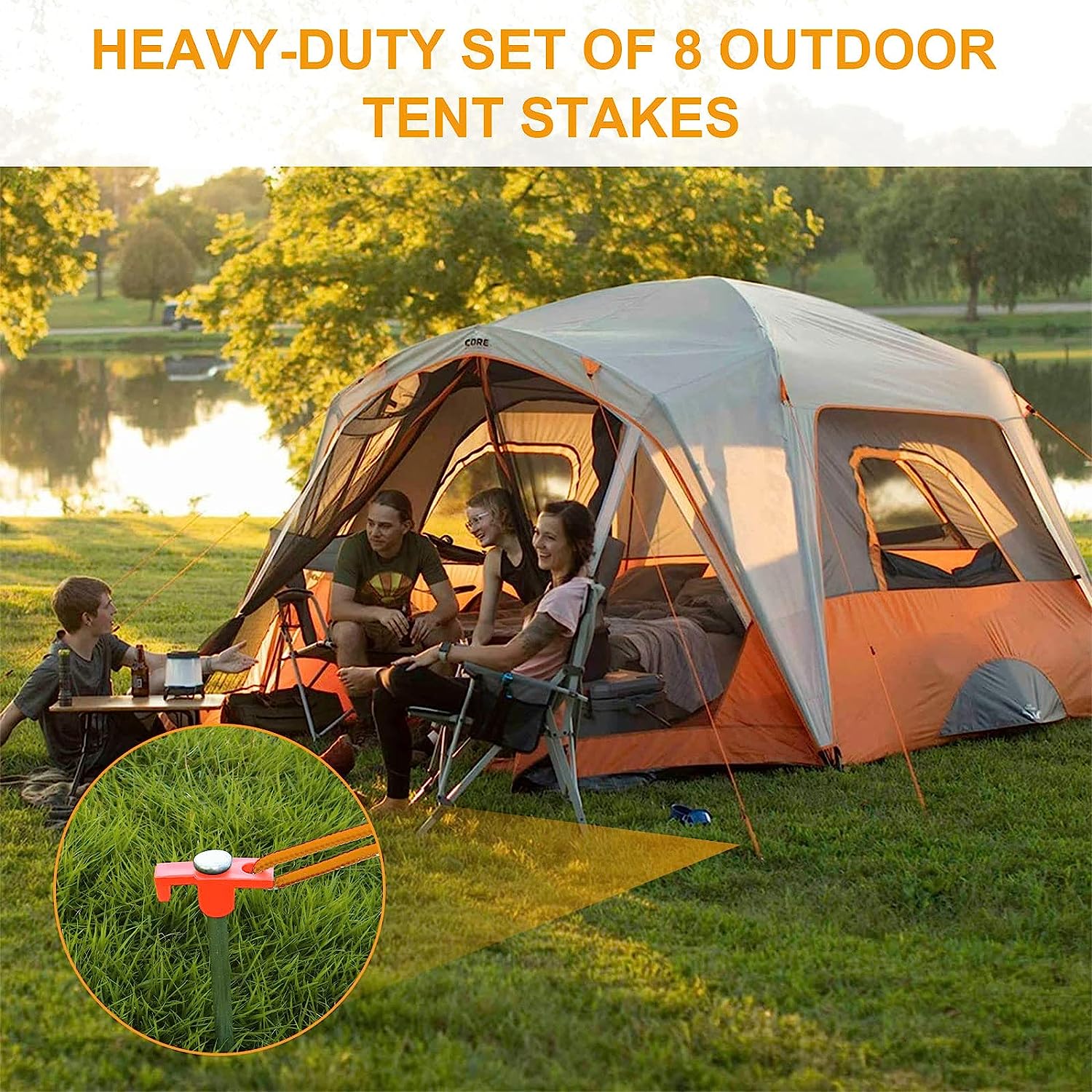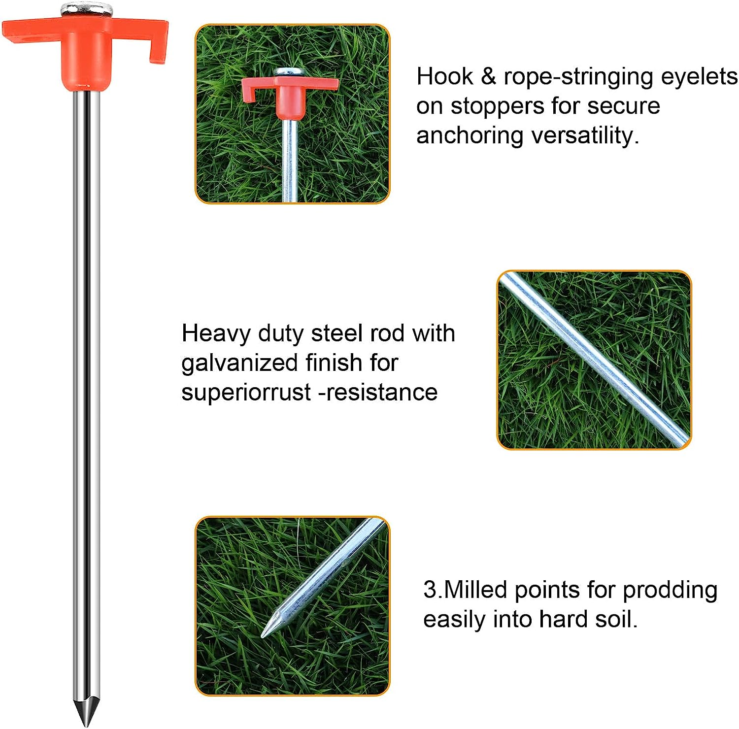 - 【Premium Steel Material】Built to last a lifetime, our tent stakes heavy duty are made from Galvanized Steel,great for prolonged outdoor use.Its steel construction makes these tent spikes easy to penetrate the roughest terrain. Drive it into the ground and prevent your tent from any trouble of a windy night.