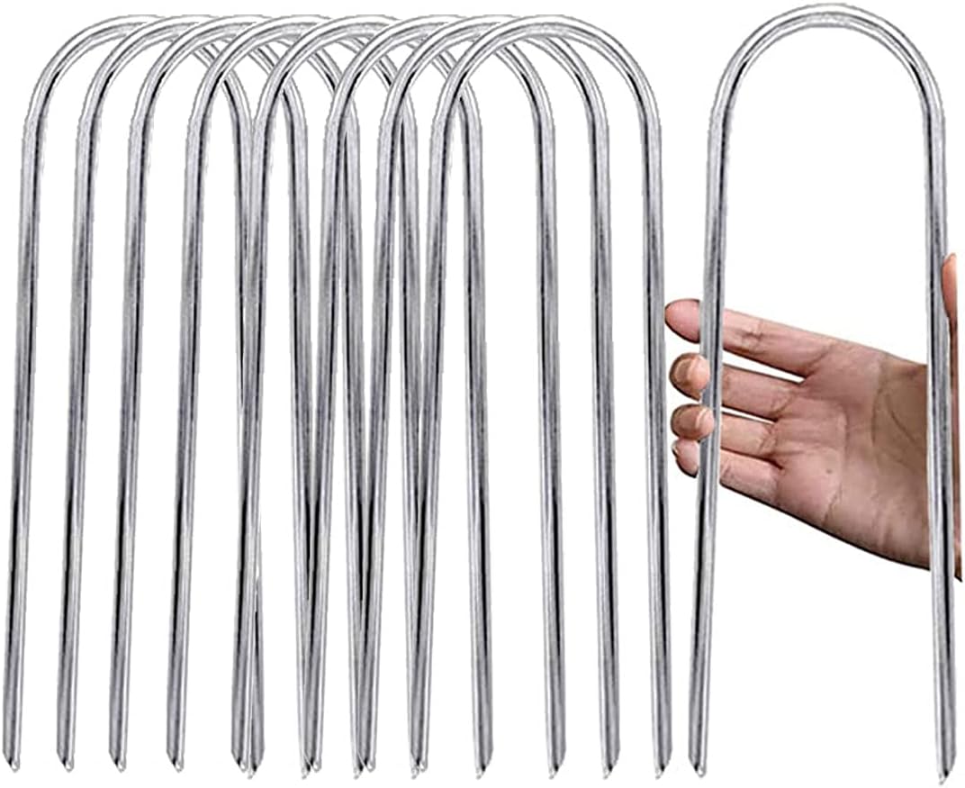 Trampoline Stakes U Shaped Anchors Heavy Duty Metal - 12‘’ Long Trampolines Ground Wind Stakes for Soccer Goals, Camping Tents, Garden Decoration (8pcs)