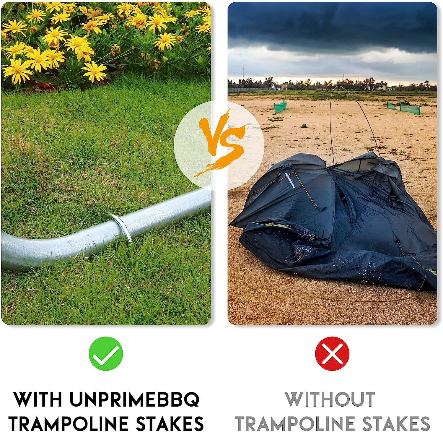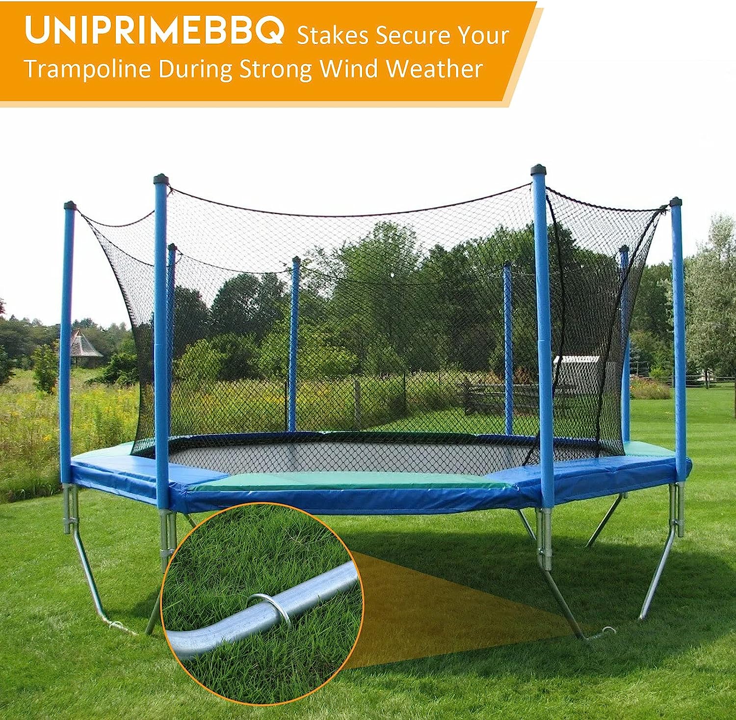 - STURDY - If you have a trampoline, it is necessary to add these heavy duty wind stakes to reinforce and keep it in place when trampoline is used, especially in the place always meet hurricane or other strong wind.